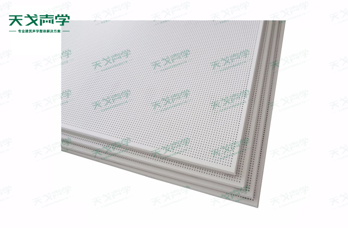 天戈鋁穿孔吸音板飾面顏色及材料選擇性廣,孔徑、孔距可根據(jù)客戶要求調整,能很好地滿足客戶多樣化的聲學及裝飾需求。穿孔吸音板對吸聲頻譜選擇性較強,對中低頻有很好的吸聲性能。如在吸聲結構后空腔上填入適量的吸聲棉可提高中、高頻吸聲效果。