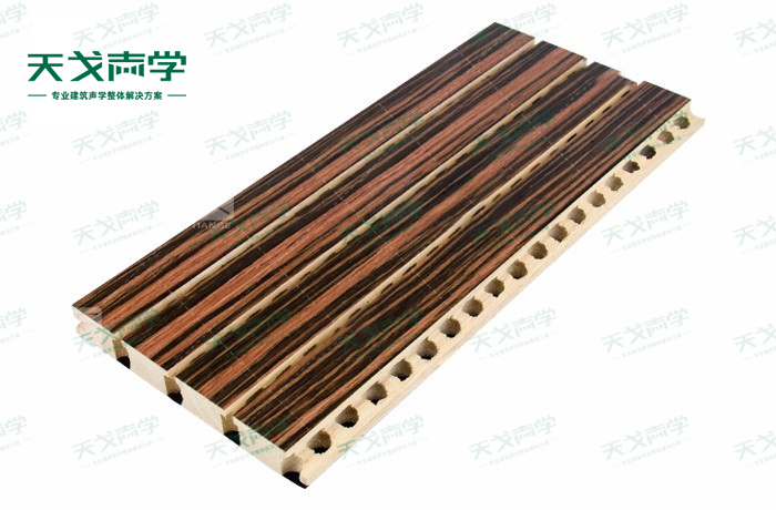 天戈實木槽木吸音板是一種在密度板的正面開槽、背面穿孔的狹縫共振吸音材料。實木槽木吸音板對吸聲頻譜選擇性很強,對中低頻有很好的吸聲性能。若在吸聲結(jié)構(gòu)后空腔填入適量的吸聲棉可提高中、高頻吸聲效果,標準化模塊設(shè)計,采用插槽、龍骨結(jié)構(gòu),安裝簡易,常用于墻面或天花裝飾。