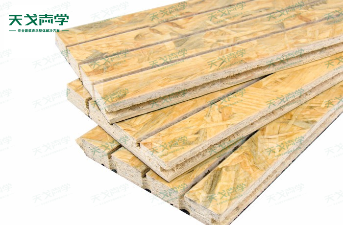 天戈麥秸板槽木吸音板是一種在密度板的正面開槽、背面穿孔的狹縫共振吸音材料。麥秸板槽木吸音板對吸聲頻譜選擇性很強,對中低頻有很好的吸聲性能。若在吸聲結構后空腔填入適量的吸聲棉可提高中、高頻吸聲效果,標準化模塊設計,采用插槽、龍骨結構,安裝簡易,常用于墻面或天花裝飾。
