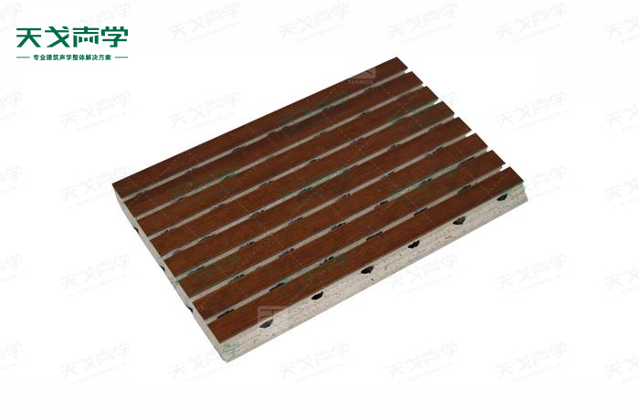 天戈玻鎂吸聲板是一種在密度板的正面開槽、背面穿孔的狹縫共振吸音材料。玻鎂吸音板對(duì)吸聲頻譜選擇性很強(qiáng),對(duì)中低頻有很好的吸聲性能。若在吸聲結(jié)構(gòu)后空腔填入適量的吸聲棉可提高中、高頻吸聲效果,標(biāo)準(zhǔn)化模塊設(shè)計(jì),采用插槽、龍骨結(jié)構(gòu),安裝簡(jiǎn)易,常用于墻面或天花裝飾。