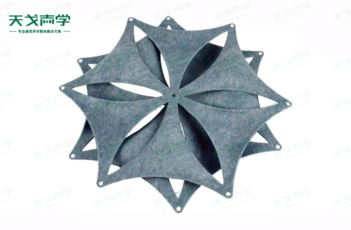 天戈3D聚酯吸音板基材采用聚酯纖維經(jīng)高溫技術(shù)熱壓并以繭棉形狀組成,3D六花瓣在中高頻范圍內(nèi)具有良好的吸音性能,且達(dá)國(guó)家B1級(jí)防火要求,廣泛用于學(xué)校、音樂(lè)廳、劇院、電影院、酒店、酒吧、書(shū)房、舞蹈室等活動(dòng)場(chǎng)所。