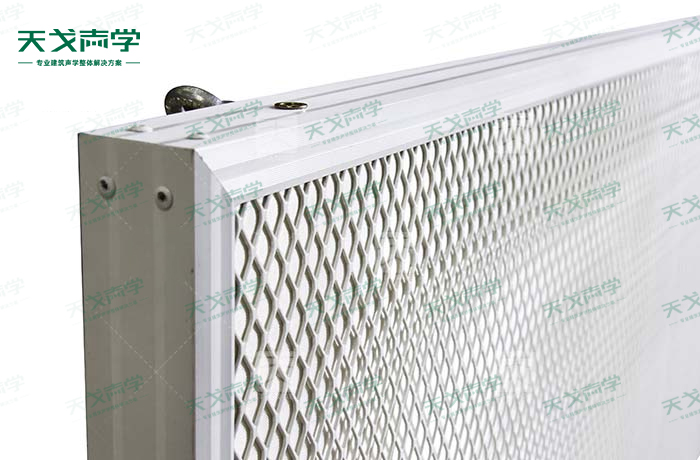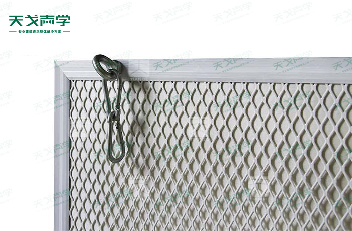 金屬網(wǎng)狀空間吸聲體是一種懸掛在頂棚具有高效吸收性能的吸聲材料。金屬網(wǎng)狀空間吸聲體一般水平或者垂直吊掛。金屬網(wǎng)狀空間吸聲體面積占頂棚總面積的30%-45%時,其材料的吸聲性能是其他聲學(xué)材料吸聲性能的2倍。
