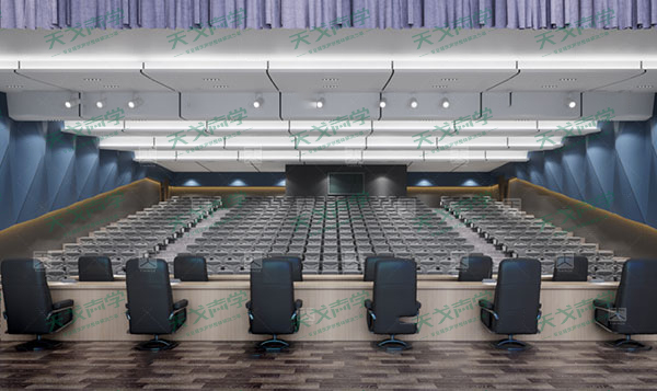 多功能廳的聲學設(shè)計方面,根據(jù)《劇場、電影院和多用途廳堂建筑聲學設(shè)計規(guī)范》(GBT50356-2005)的規(guī)定,多功能廳觀眾廳有效容積V約2250m3,根據(jù)容積選擇中頻500-1000Hz滿場混響時間T≤0.9±0.10s;多工能廳定位主要為滿足學術(shù)匯報,舉辦中小型會議及文藝演出功能。鑒于以上使用功能,為了方便監(jiān)控人員對舞臺進行實時監(jiān)控和即使切換節(jié)目,建議在觀眾席后排增加一個控制室。但是后排需減少座位17個,現(xiàn)有容納人數(shù)約為473人。多功能廳的設(shè)計理念有“激昂青春”“充滿生機的沃土”“揮灑汗水、茁壯成長”“迸發(fā)活力、向著未來奮進”,設(shè)計效果上木紋代表著陽光、朝氣,生機,以黃色為背景色,綠色襯托,突顯風格搭配 ,綠色營造出活力向上,團隊拼搏的氛圍 ,輔以規(guī)則矩形糟木條排列視覺的呈現(xiàn) ,有力度地詮釋當代少年積極陽光的態(tài)度內(nèi)涵。墻身采用陶晶砂吸音板進行造型設(shè)計;天花采用雙層石膏板進行造型設(shè)計;觀眾地面材料PVC塑膠地板;舞臺地面采用專用舞臺地板;座椅采用專用禮堂座椅。