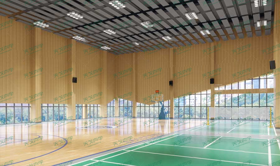 2021年,天戈聲學作為總包單位承接了加美實驗學校多功能廳和體育館的聲學裝飾工程,天戈聲學為其提供了專業(yè)的聲場檢測、聲學設(shè)計、聲光音響設(shè)計、材料制造、施工 一體化的整體解決方案服務(wù)。根據(jù)相關(guān)國家標準《民用建筑隔聲設(shè)計規(guī)范》、《廳堂擴聲系統(tǒng)設(shè)計規(guī)范》、《體育館聲學設(shè)計及測量規(guī)程》等,為避免場所內(nèi)顫動回聲、聲聚焦等音質(zhì)缺陷的出現(xiàn),我們?yōu)槠溥M行了聲學裝飾專項設(shè)計。
