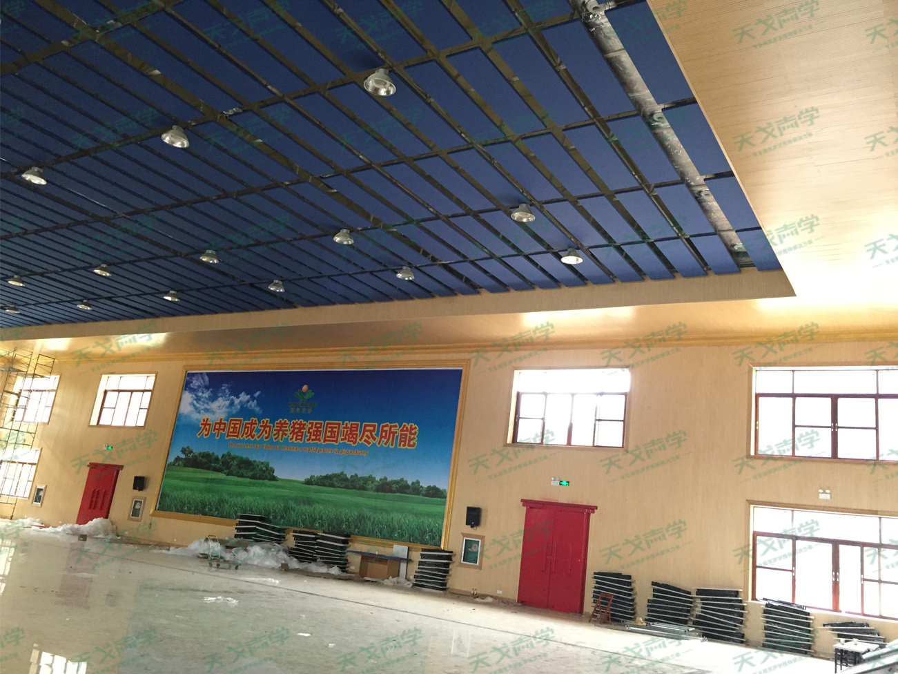 天戈聲學(xué)根據(jù)廣西貴港八墉企業(yè)體育館現(xiàn)有的問題和實際情況,選用1200平方米的槽木吸音板作為墻面吸音使用,另在體育館頂棚使用了800平方米的吸聲體進行吸音,從而使到體育館內(nèi)達到最佳的混響時間,聲場均勻且清晰度高.