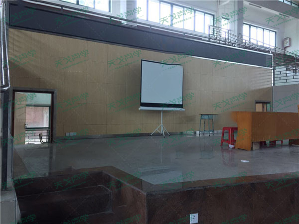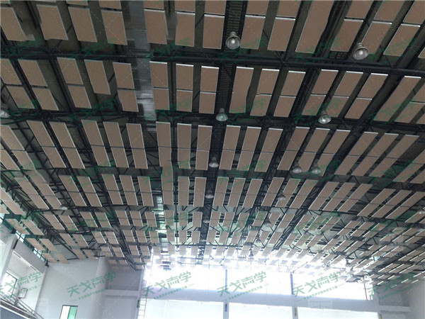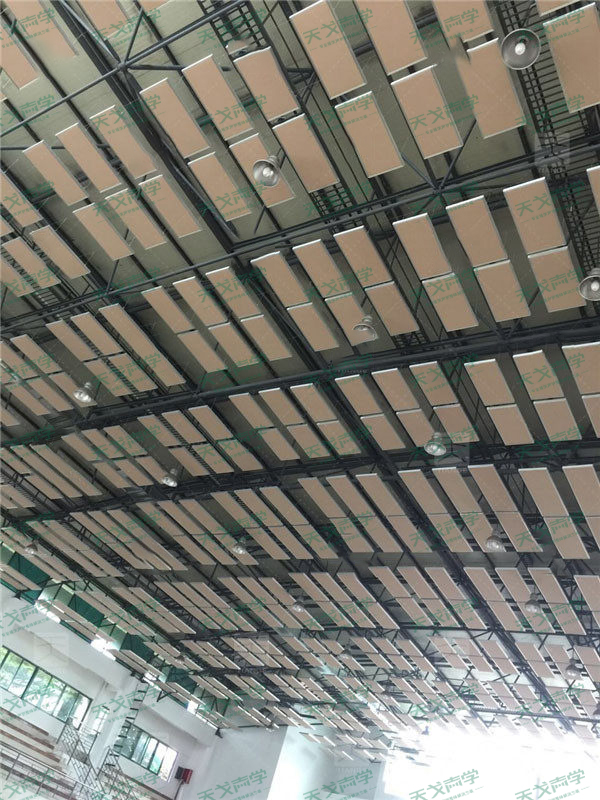 2015年6月學校就此項目立項,2016年10月確定由我公司 佛山天戈科技有限公司進行體育場館的聲學深化和施工。我公司接到此項任務(wù)后,首先與設(shè)計方共同探討了體育館聲學設(shè)計方案,經(jīng)過一個禮拜的深化和完善,最后制定出合理的聲學方案,墻面采用天戈環(huán)??啄?a href="http://m.av250.net/" target="_self" title="吸音板" style="margin: 0px; padding: 0px; color: rgb(28, 87, 196); text-decoration-line: underline; border: none;">吸音板,天花安裝平板吸聲體,學校領(lǐng)導也一致認可。