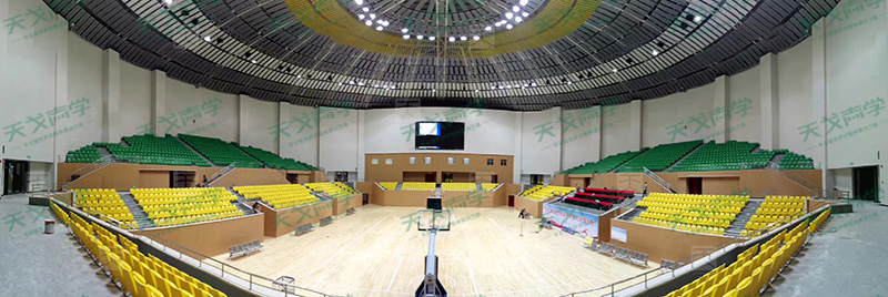 在對(duì)體育館的擴(kuò)聲要求上,天戈聲學(xué)的設(shè)計(jì)滿足到觀眾席上有足夠的響度、揚(yáng)聲器的布置覆蓋整個(gè)觀眾席和比賽場(chǎng)地、盡量使聲場(chǎng)均勻,不出現(xiàn)死區(qū)、具有清晰的聽聞條件,良好的方向感和節(jié)目的保真度、系統(tǒng)有足夠的穩(wěn)定度和功率余量五個(gè)條件。